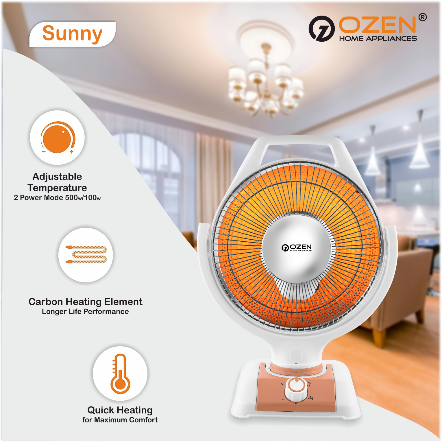 Give a new and refreshing look to your decor with the elegant design by OZEN. The OZEN Room Heater is capable of delivering warmth to each and every corner of your room. This room heater is designed under the supervision of many professionals who ensures the quality check  and energy efficiency.